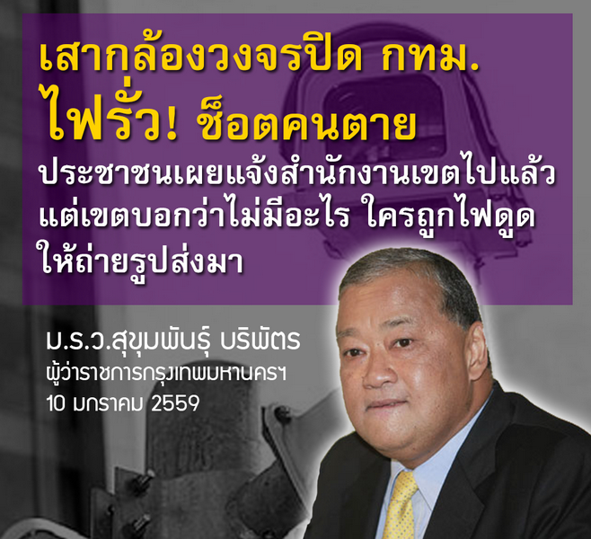 ควรไปเดินลูบเสากล้อง CCTV ทุกเสาใน กทม. เพื่อตรวจสอบว่ามีไฟฟ้ารั่วหรือไม่ เพื่อสร้างความมั่นใจให้กับคนกรุงเทพฯ และควรทดสอบด้วยว่า กล้อง CCTV ที่ติดตั้งใช้การได้จริงทุกตัวหรือไม่