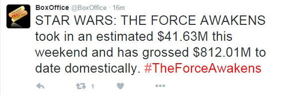 [DAY23 & 24 of TFA] Star Wars: The Force Awakens ขยับขึ้นสู่อันดับ 3 Worldwide Box Office + ผ่านหลัก $800M ในอเมริกา