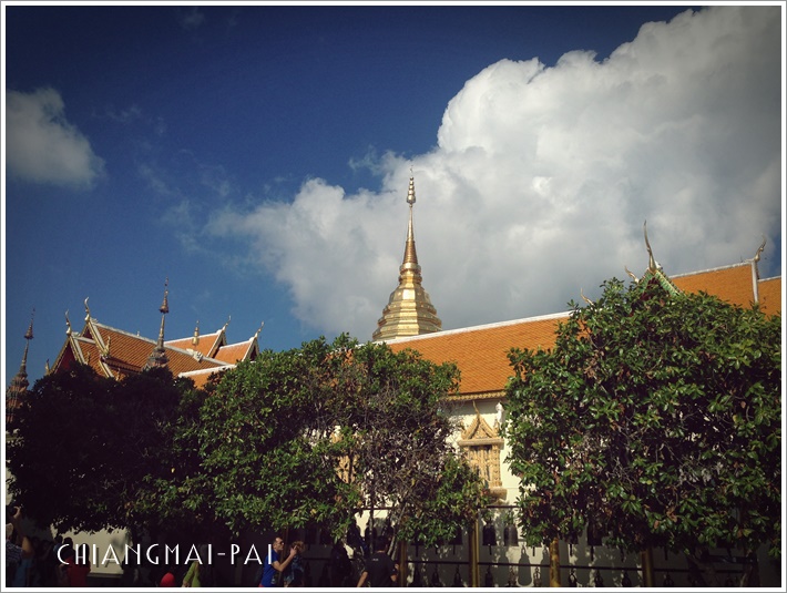 จากนั้นพวกเราทีม 1 ก็เดินทางไปตามเส้นทางขึ้นพระธาตุดอยสุเทพ อากาศเย็นๆตลอดเส้นทาง ก่อนที่เราจะไปพระธาตุดอยสุเทพก็ขี่รถไปที่พระตำหนักภูพิงค์ราชนิเวศน์ก่อน พอเข้าไปด้วยระยะทางภายในนั้น 2.5 กิโลเมตร เราทั้ง 2 คน ก็เลยเดินรอบๆบริเวณนั้นใกล้ๆ และก็กลับมาพระธาตุดอยสุเทพ ขณะนั้นคนเยอะมากบวกกับอากาศร้อนเราก็เลยออกมาด้านนอกของพระธาตุ และก็กลับเข้ามากินข้าวกลางวันกันในเมือง
