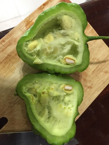 จนออกผลได้นำมาปรุงเป็นอาหาร นี่เป็นครั้งแรกที่ปลูกมะระค่ะ รู้สึกตื่นเต้นมาก