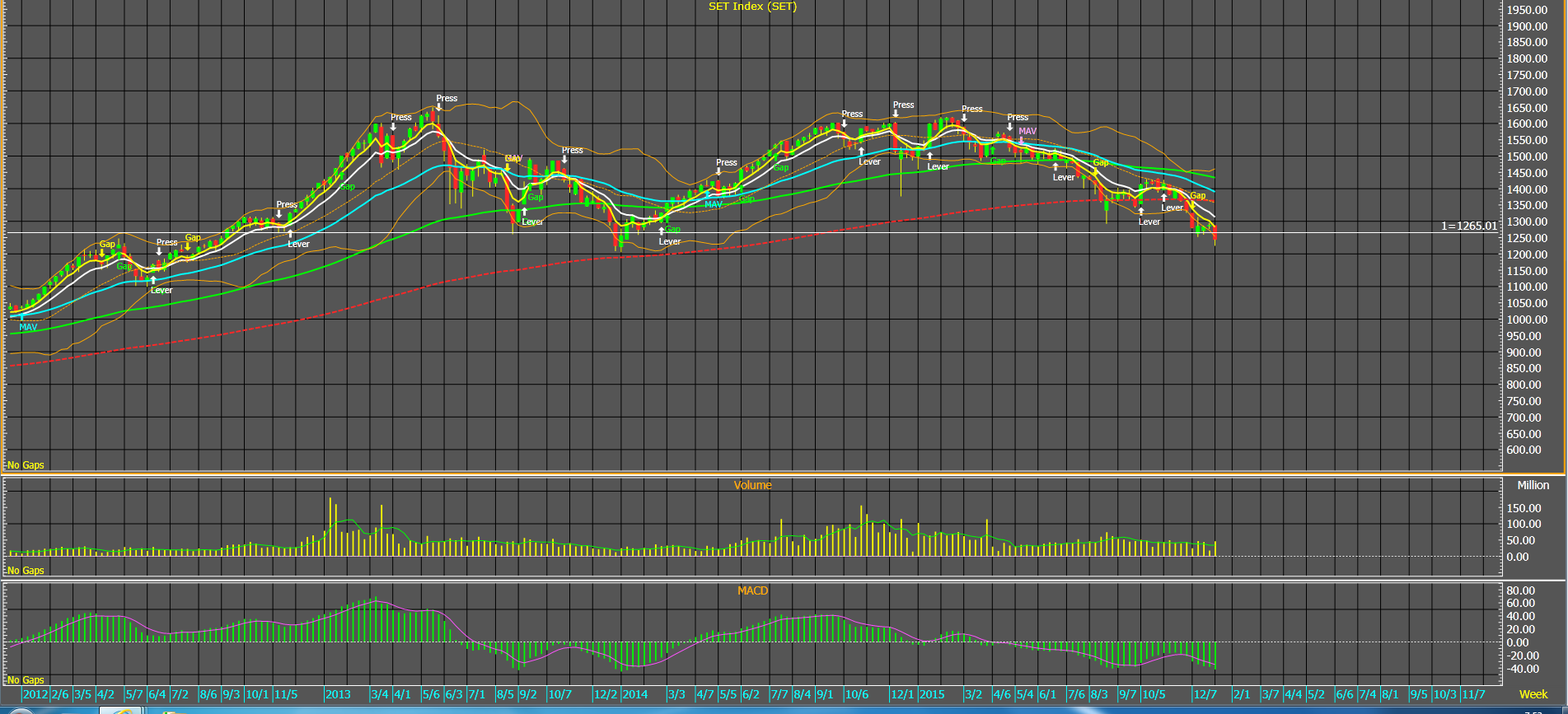 สรุปสัปดาห์ที่ 4 ธันวาคม 2558 (21-25 ธ.ค. 2558) สัปดาห์นี้ SET เคลื่อนไหวในกรอบ แคบๆ โดยมีดัชนีอยู่ระหว่าง 1258.73 และ 1287.46 ผมคาดว่าน่าจะเป็นช่วงท้ายปี อย่างไรก็ตามในระหว่างสัปดาห์มีการเทขายของนัก