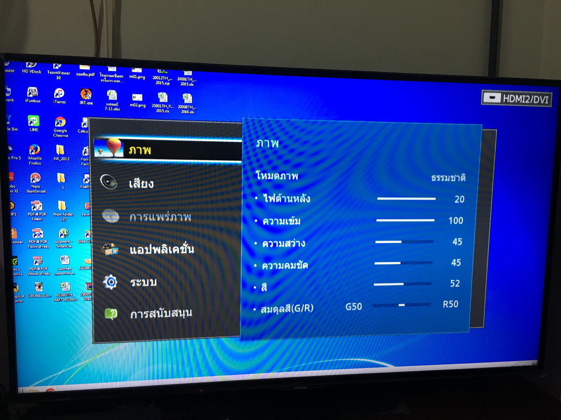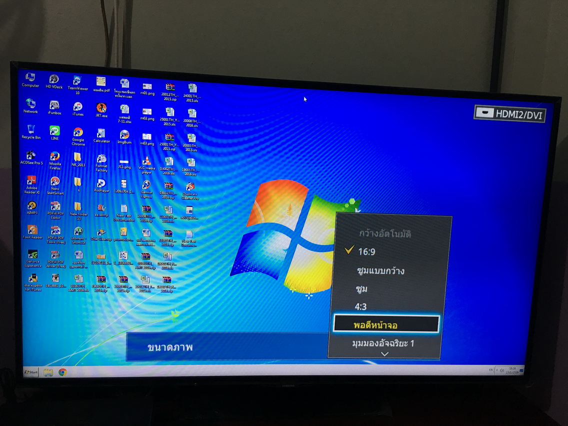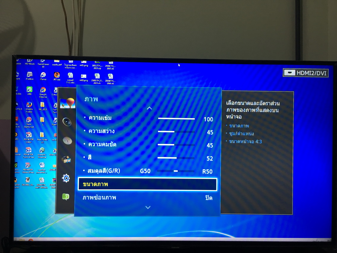 ผมต่อคอมพิวเตอร์ PC กับ TV SAMSUNG TV 48" รุ่น UA48H5003 ภาพขอบๆ หายครับ ใช้สาย HDMI ต่อ ภาพมันเกินจอ ตามรูปเลยครับ