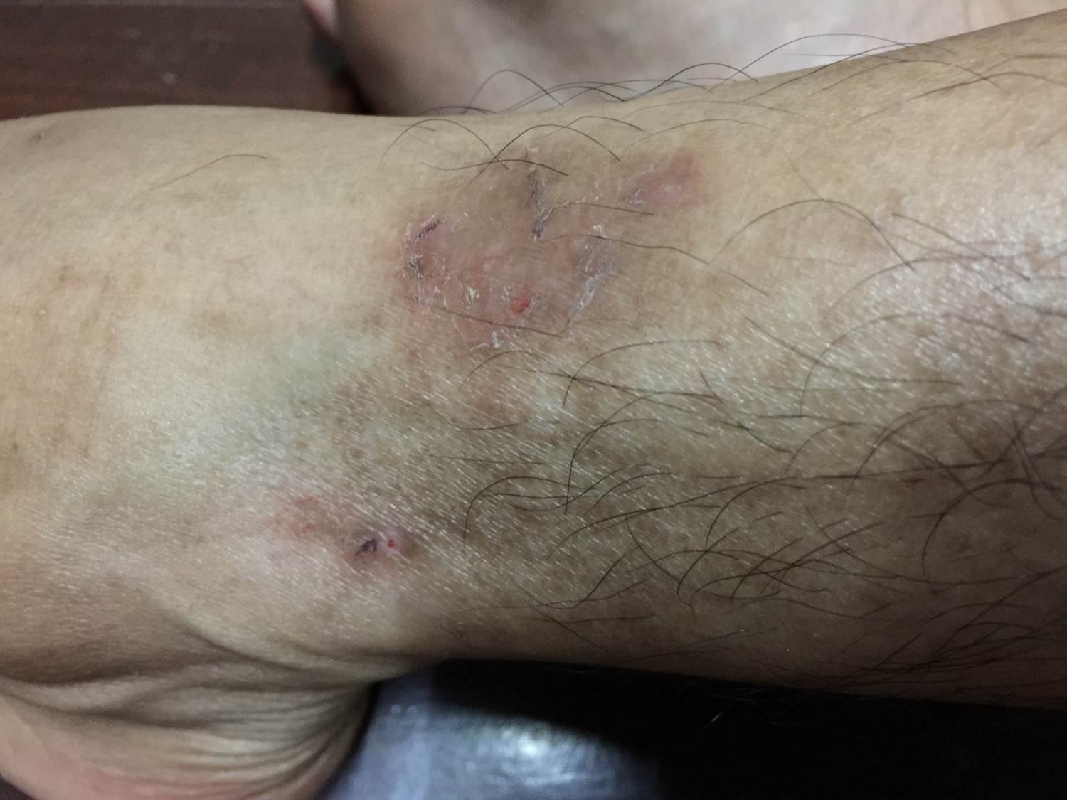 สอง ถึง สามวันก็จะเป็นสะเก็ดแห้งและคัน ดังรูป
