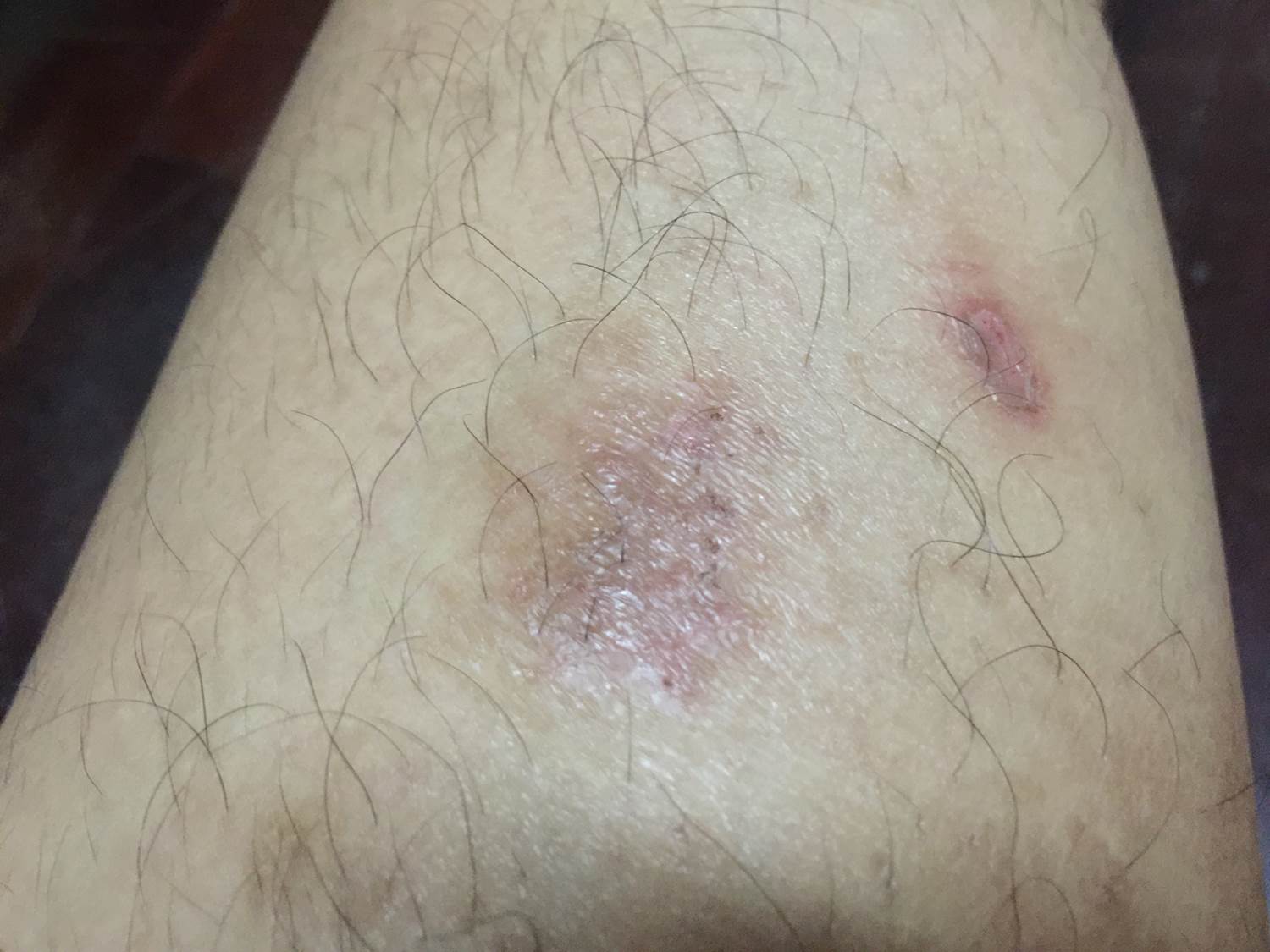 พอตุ่มน้ำนั้นแตก ก็จะคันมากและกลายเป็นแผล ขอบนูน ด้านในราบแดงคัน