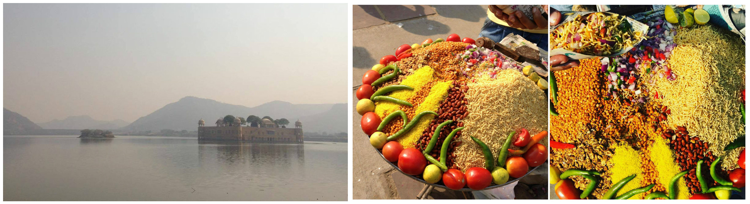 ระหว่างทางเข้าเมืองอังเคิ้ลแวะให้ชม Jal Mahal หรือราชวังร้างกลางน้ำ บริเวณที่ฝั่งมีของวางขายบนถนน ซื้อยำถั่วกิน 30รูปีอร่อยดีค่ะ
