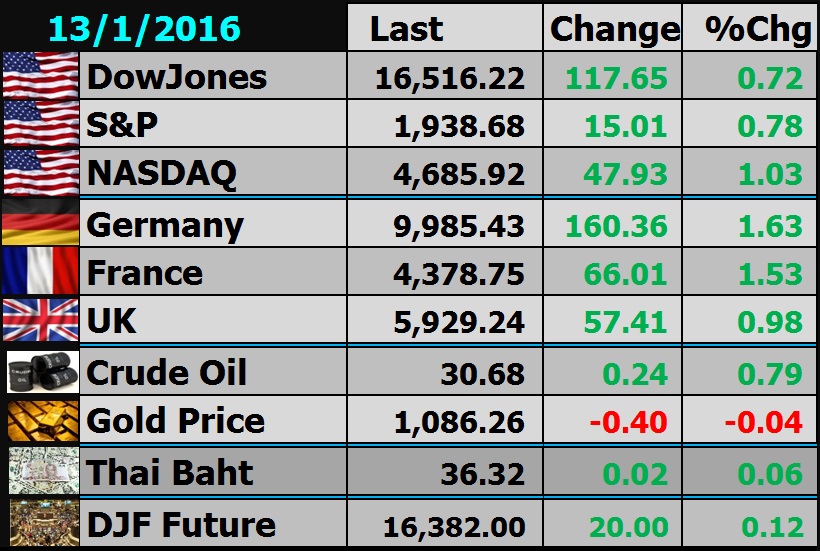 DJIA : พุ่ง 117.65 จุด รับข่าวจีนหนุนเสถียรภาพเงินหยวน