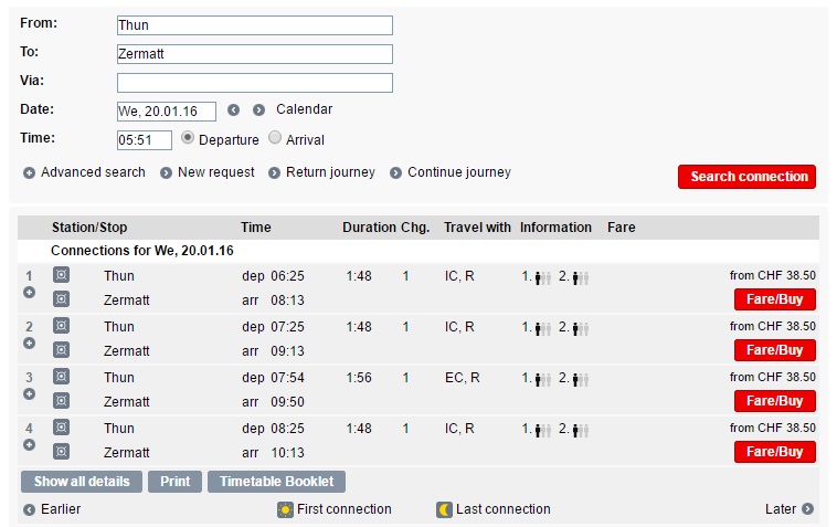 -1. คือผมจะเดินทางจาก Thun ไป Zermatt เพื่อไปเขา Matterhorn และกลับที่พักที่ Thun พอเช็คในเว็บแล้ว ทำไมเห็นแต่เวลาการเดินรถในช่วงเช้าอะครับ ขากลับผมจะกลับยังไง