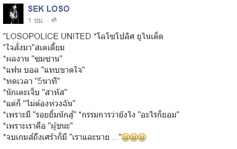 อย่างไรก็ตามล่าสุด "เสก โลโซ" ออกมาอัดคลิปผ่านแฟนเพจของตนยืนยันว่ามีการหารือกันจริง และเรื่องดังกล่าวอยู่ระหว่างการทำบันทึกความตกลงร่วมกันที่จะเข้าเป็นผู้สนับสนุน และร่วมบริหารกับ "เดอะ บิ๊ก" สัมฤทธิ์ บัณฑิตกฤษดา ประธานสโมสร เพื่อนตำรวจ ที่จะเปลี่ยนชื่อทีมเป็น "โลโซ โปลิศ ยูไนเต็ด" และจะยืนยันความชัดเจนในสัปดาห์หน้า