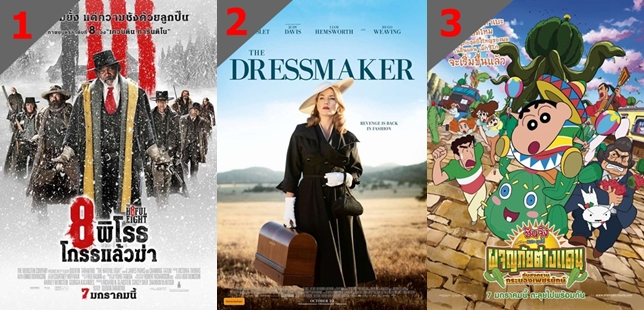 อันดับ 1 : The Hateful Eight ภาพยนตร์ที่รวบรวมทั้งความดิบ ความเถื่อน และความรุนแรงเข้ามาไว้ด้วยกัน เรื่องราวของคน 8 คนที่ต้องมาอาศัยร่วมกันใต้ชายคาบ้านพักหลังหนึ่งท่ามกลางพายุหิมะที่กระหน่ำเข้ามา แค่เพียง 1 วัน มันกลับเป็นฝันร้ายเลือดสาด ซึ่งในช่วงต้นของหนังนั้นอาจทำให้เกิดความหน่ายได้กับบทพูดที่ยาวเหยียดชวนง่วง แต่พอผ่านจุดนี้ไปได้คนดูจะพบกับความสนุกแบบลุ้นระทึกจัดเต็มขึ้นมาทันที