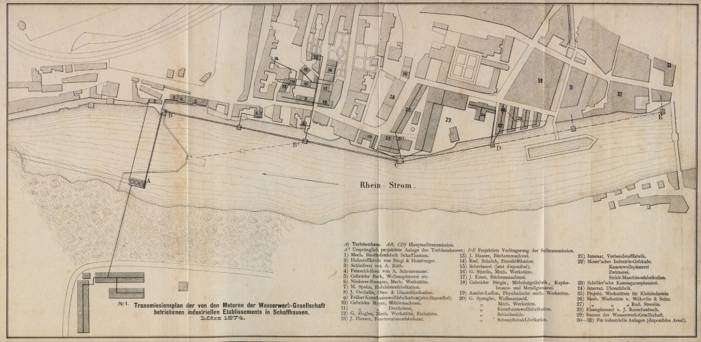 [แบบแปลนเขื่อน Heinrich Moser และแบบของการชุดการส่งกำลังด้วยสายพานไปในเมือง]