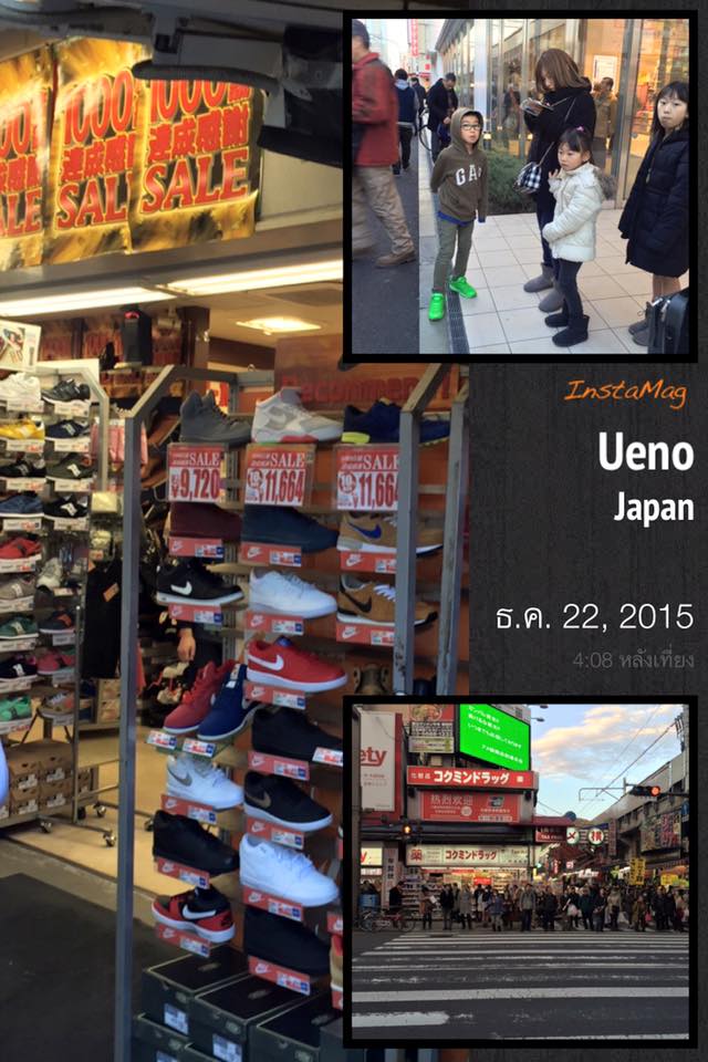 15.00 - เดินเล่นในตลาด Ueno ซื้อเสื้อขนเป็ดยูนิโคล่ 1 ตัว ถูกกว่าไทย เบา อุ่น เก็บความร้อน เดินเข้าไปในตลาดนี้สะอาด เมล่อนที่ตลาดนี้อร่อยมากๆ คนไทยมาลองไปกินกันดู 200 เยน ละลายในปากเลย ฉ่ำมากๆ ตลาดขายไข่ปลา ขายปลาหมึกยักษ์ ปูขน ขายไข่หอยเม่น Fresh Uni รองเท้านำเข้าจากบังกลาเทศ และก็พวกเกี่ยวกับคอสเมติก ราคาไม่แพง