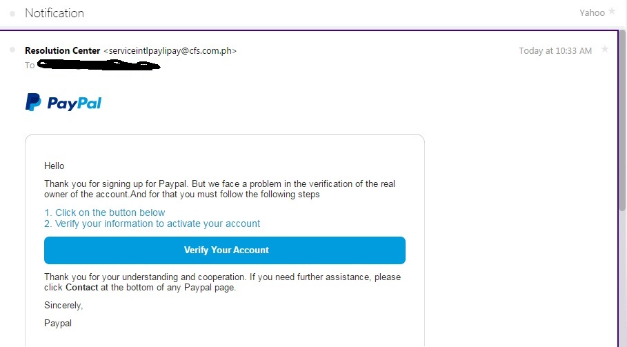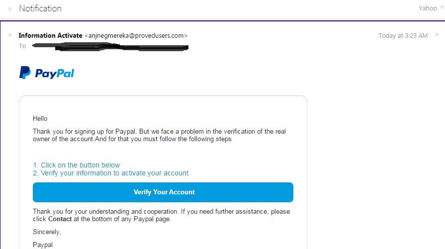 ไม่เคยสมัคร paypal เลย ทำไมมี mail มาบอกว่าสมัครแล้วและให้ verify ตัวตน