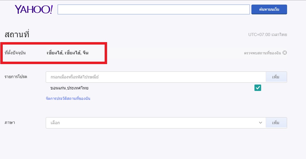 เข้าเมล์ของYahoo แล้วแสดงตำแหน่งที่ตั้งผิดพลาด มีวิธีแก้ไหมครับ
