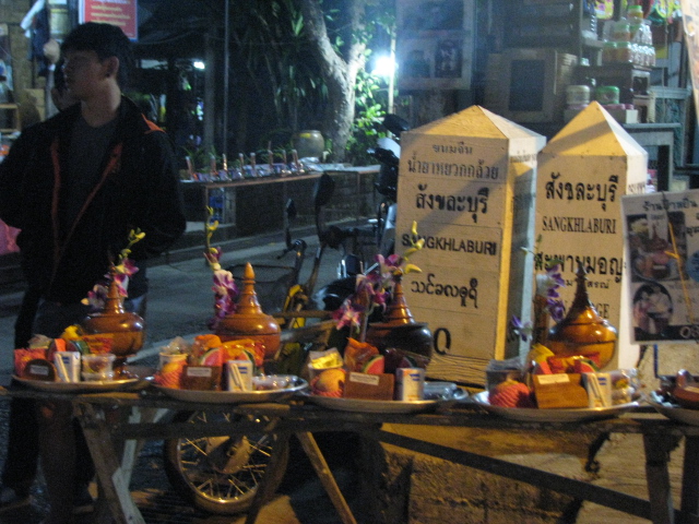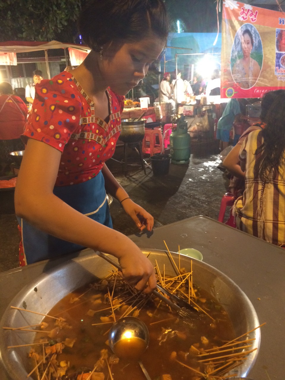 ปั่นๆมาสักพักก็ถึงถนนคนเดิน ซึ่งระยะทางจากสะพานมอญมาถนนคนเดินประมาณสัก 2 กิโลเมตร.ซึ่งคินนี้ตรงกับวันเด็ก ที่ถนนคนเดินจึงมีกิจกรรมวันเด็ก.และเด็กมากมายทั้งเด็กชาวไทยและเด็กชาวพม่าเชื้อสายมอญและเชื้อสายอื่นๆ ออกมาทำกิจกรรมกัน.ก่อนจะมาดูกิจกรรมของน้องๆไปหาอะรัยกินให้หายหิวก่อนดีกว่า ปั่นไปเรื่อยๆก็มาสะดุดตากับร้านนี้ มันคือร้านหมูจุ่ม ของขึ้นชื่อของที่นี่ที่ไครๆมาก็ต้องลอง และผมขอบอกเลยคับว่าห้ามพลาด