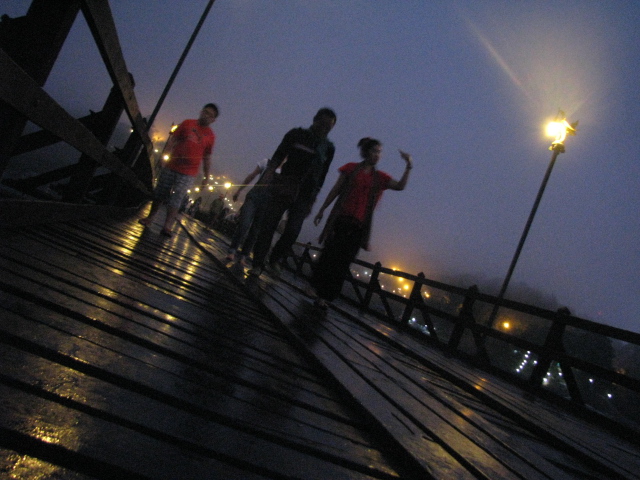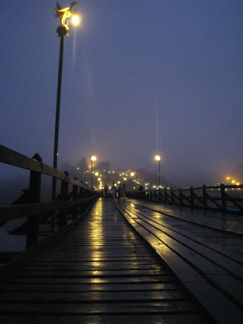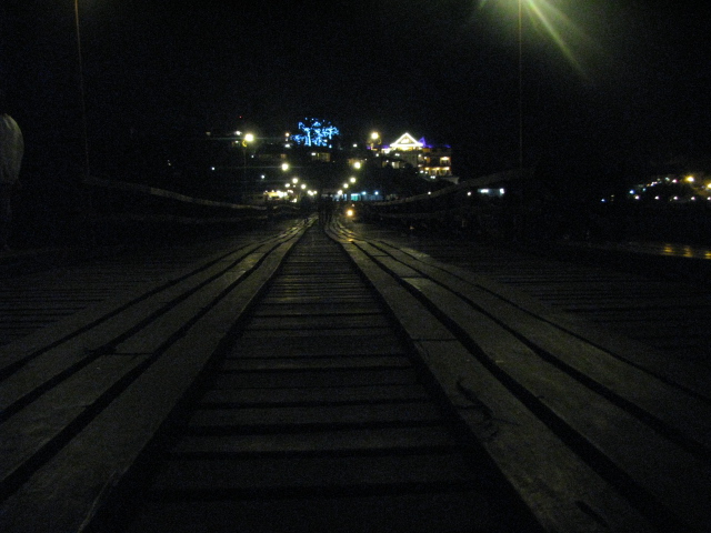 เดินถนนคนเดินจนเพลินเหลือบดูนาฬิกาเกือบ 4 ทุ่มแล้ว.คงต้องกลับที่พักของเราดีกว่า เดี๊ยวจะวังเวงไปเดินทางคนเดียว 555. จับน้องปั่นๆ ปั่นกลับสะพานมอญ มาดูบรรยากาศสะพานมอญยามคำคืนกันบ้าง ก็สวยงามไปอีกแบบนึงนะ