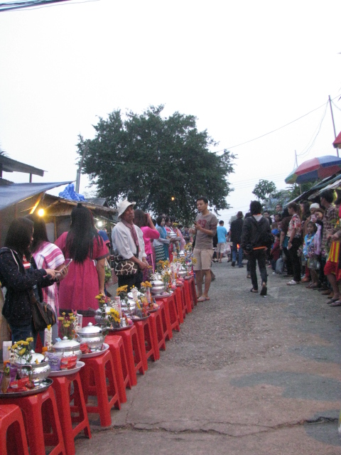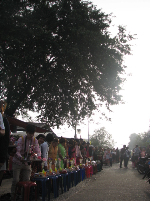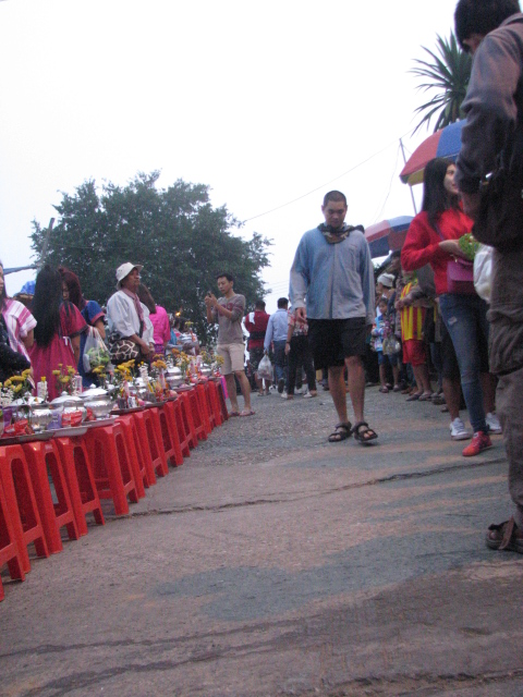 ทุกคนยืนเป็นแถวพร้อมเพียงกันมาก และใจจดใจจ่อที่จะได้ใส่บาตรกัน