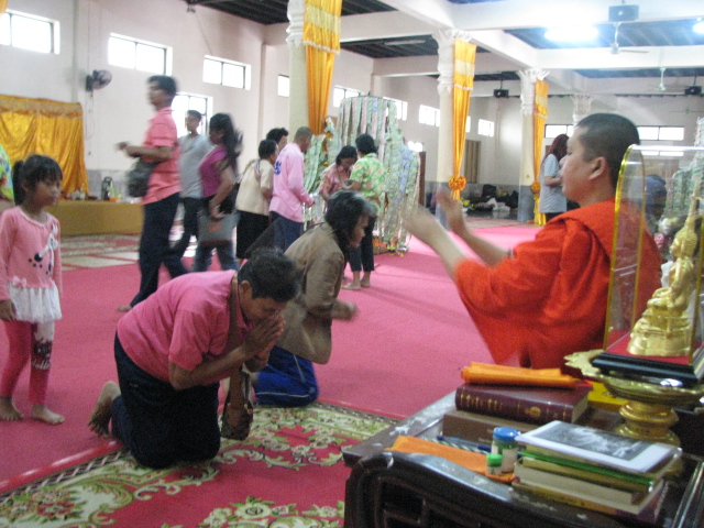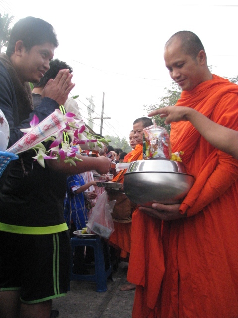 รอสักพักใหญ่พระก็เดินมาถึง ใส่บาตรกันดีกว่า