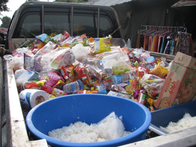 แต่เหมือนรอนานไปหน่อยกว่าพระจะมาถึงบริเวณที่เรายืน เพราะเนื่องจากมีคนใส่บาตรกันจำนวนมาก สภาพเลยเป็นเช่นนี้
