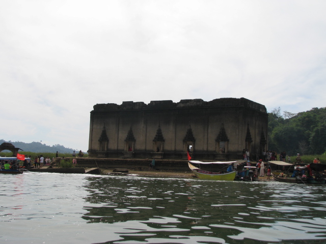 เมื่ออิ่มแล้วไปไหนดีละ นั่งเรือไปชมวัดกลางน้ำดีกว่า ที่นั่นจะมีเรือคอยบริการพานั่งท่องเที่ยว อัตราค่าบริการก็ 500 บ./6 คน.