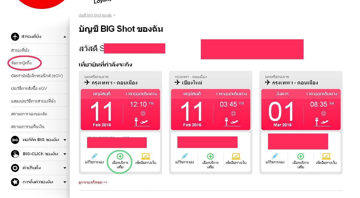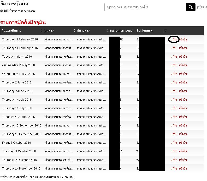 หากไม่มีให้กด จัดการบุ๊คกิ้งจะได้หน้านี้ เลือกเที่ยวบินที่ต้องการโหลดกระเป๋า กดที่แก้ไข