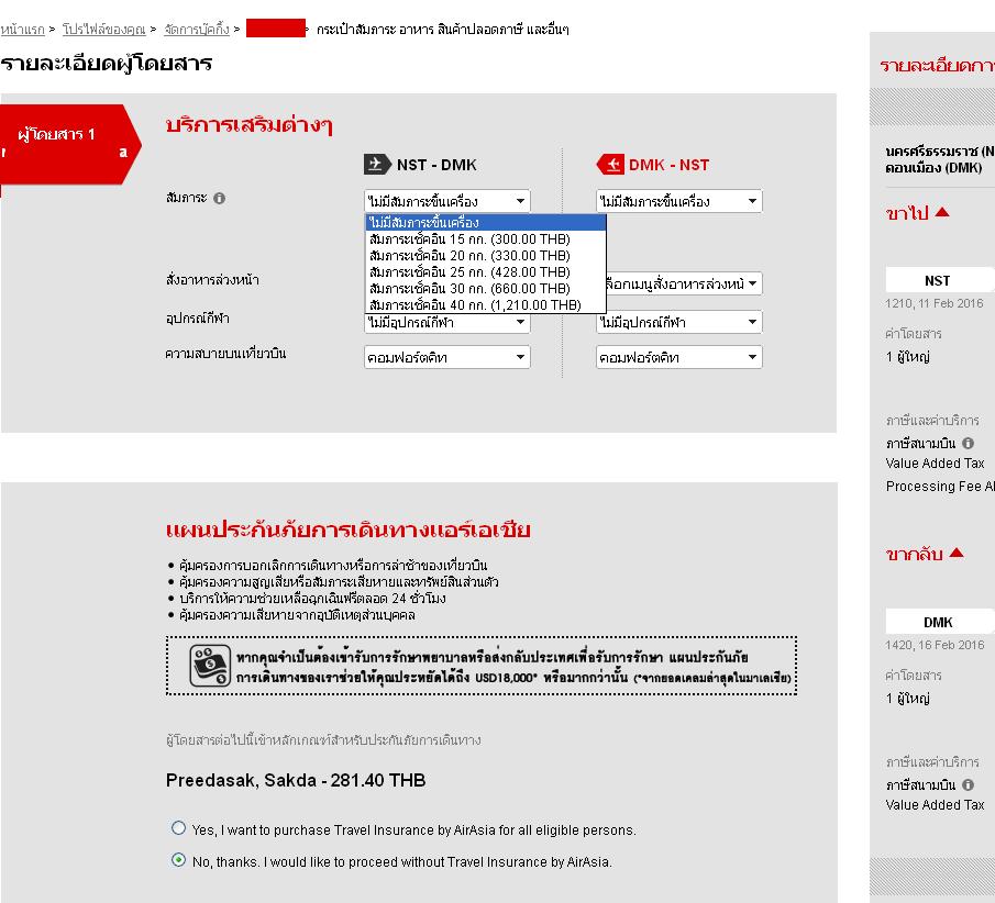 ใช่ 10 กิโลกรัม ราคา 99 บาทหรือเปล่าครับ ถ้าใช่ ตอนนี้ทางแอร์เอเชียหมดโปรตัวนี้ไปแล้วครับ