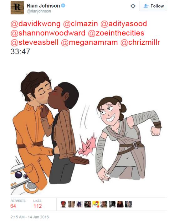 Rian Johsin (ผกก. Star Wars Episode 8) ได้ทวีตภาพคู่รักของภาคต่อไป....[Spoilรึเปล่า? เฮียแกอาจจะแค่โพสต์ขำๆ]