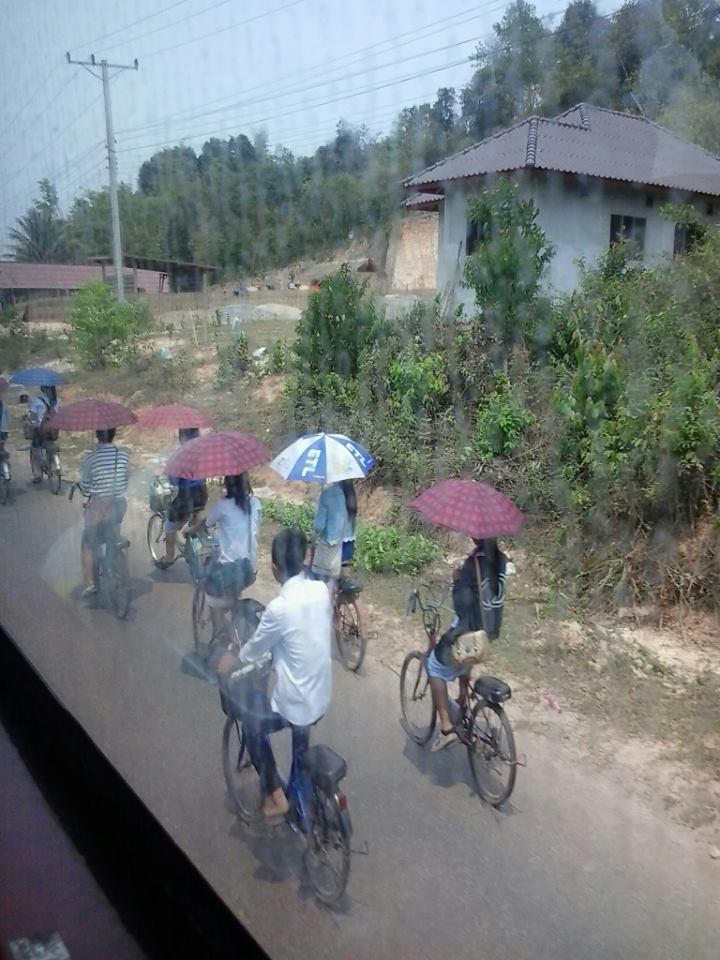 นักศึกษาลาว ปั่นจักยานกางร่ม เรียกสิ่งนี้ว่าความน่ารัก ^^