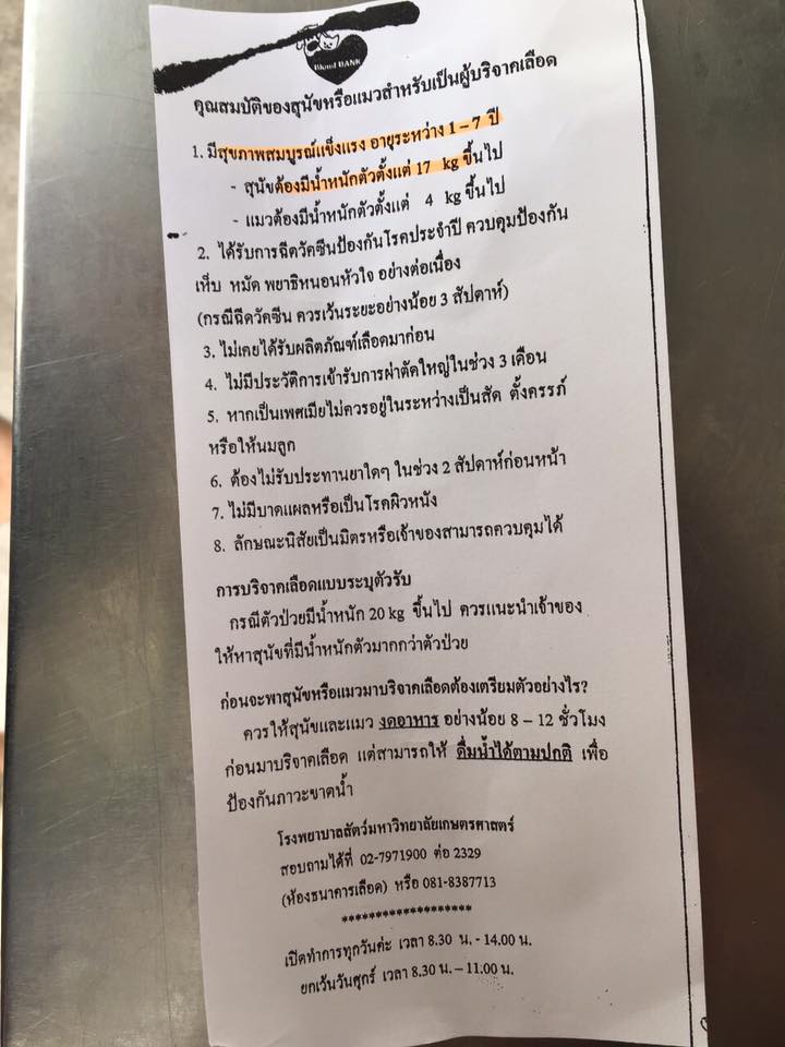 ขอรับบริจาคเลือดสุนัขด่วน แอดมิทที่อยู่ที่รพส.เกษตร ค่ะ