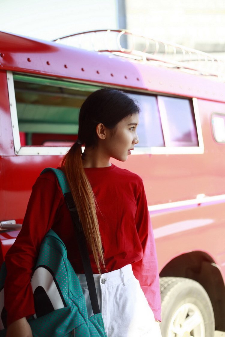 จากนั้นไปล้างหน้าแปรงฟันที่ห้องน้ำแล้วนั้งรถแดงไปที่ขนส่งอาเขตเพื่อเช่ารถมอไซค์