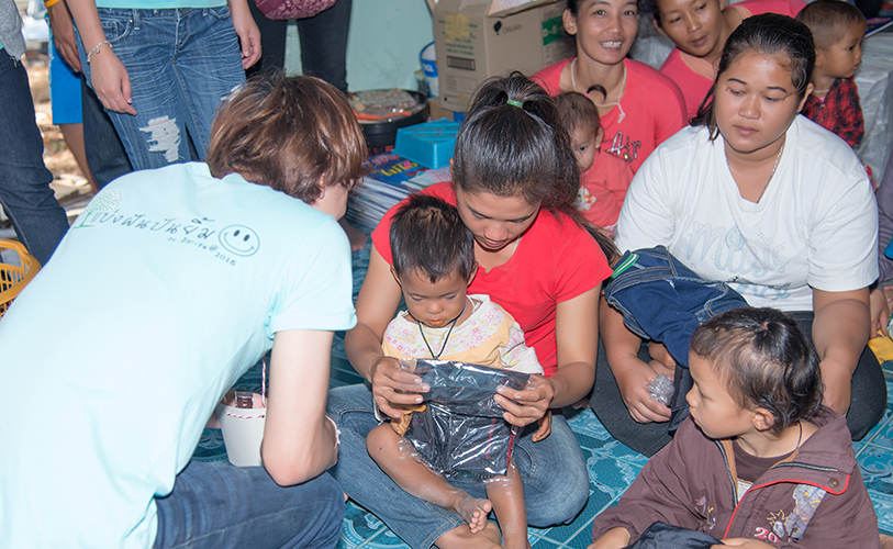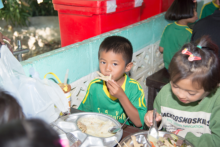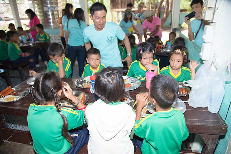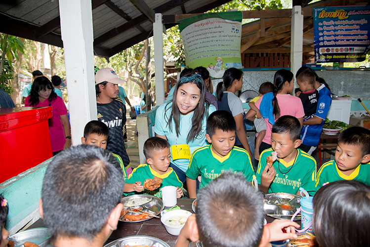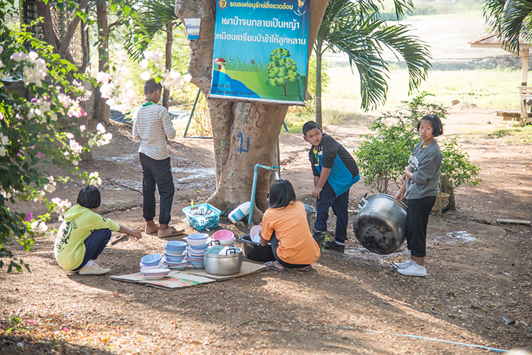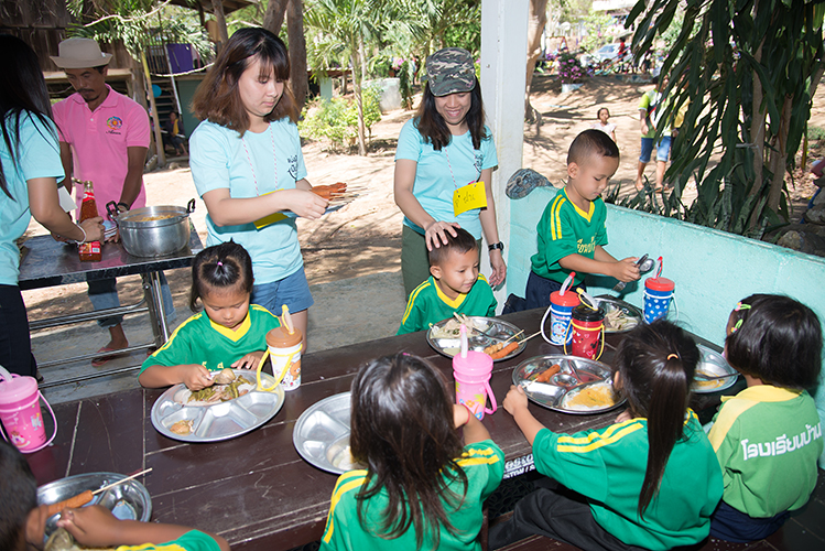 เมื่อกลุ่มเดินทางไปถึงโรงเรียน ได้แบ่งกลุ่มเป็น สองส่วน ส่วนแรกจัดเตรียมอาหารกลางวัน