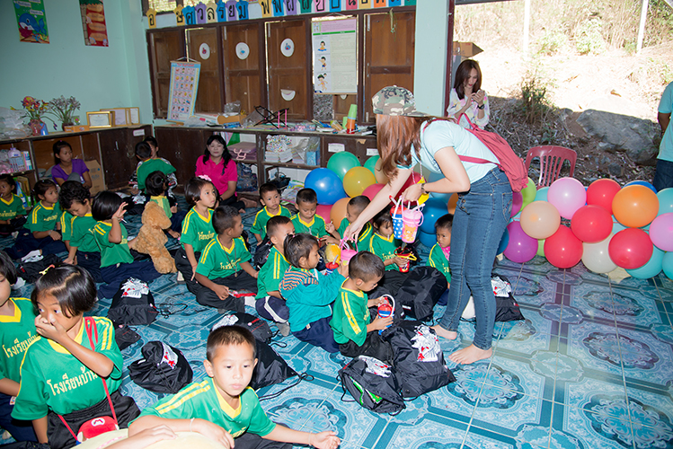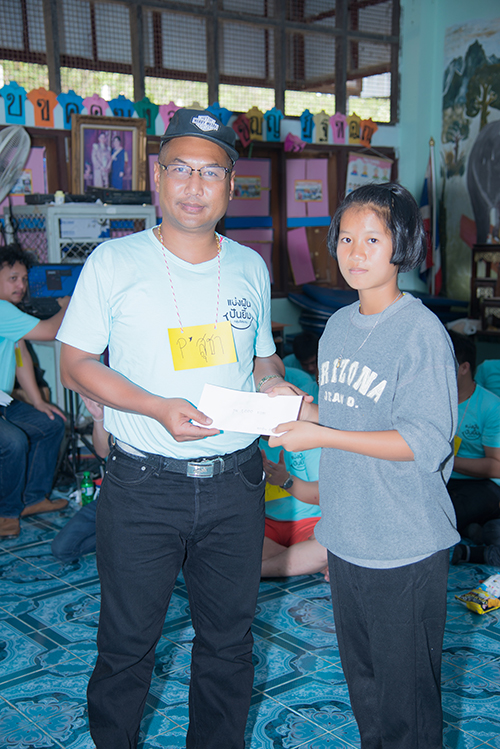 ช่วงบ่ายมีกิจกรรมแจกสิ่งของให้กับเด็ก และมอบทุนการศึกษา รวมทั้งของใช้ให้แก่ทางโรงเรียน ซึ่งสิ่งของเหล่านั้นได้จากผู้มีจิตสัทธาส่งผ่านสมาชิกของกลุ่มนำมาให้แก่เด็ก และโรงเรียน