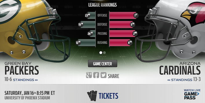 5th Seed GREEN BAY PACKERS VS 2nd Seed ARIZONA CARDINALS