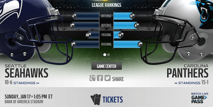 6th Seed SEATTLE SEAHAWKS VS 1st Seed CAROLINA PANTHERS
