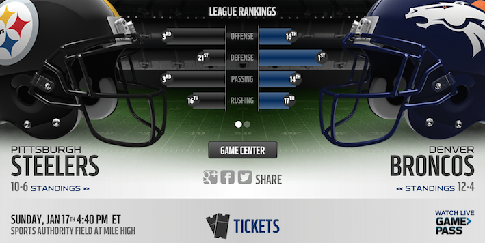6th Seed PITTSBURGH STEELERS VS 1st Seed DENVER BRONCOS