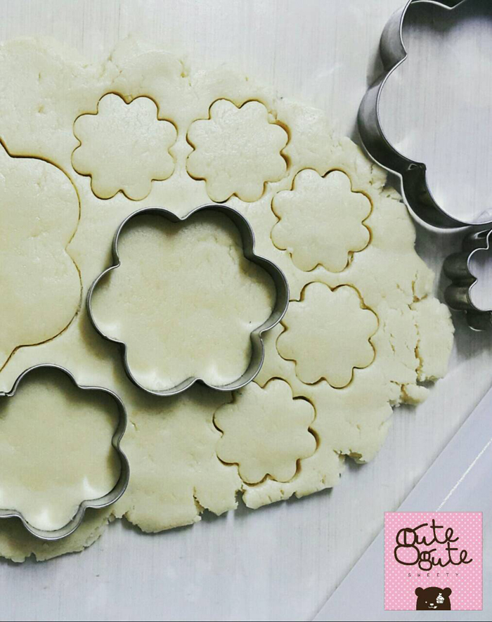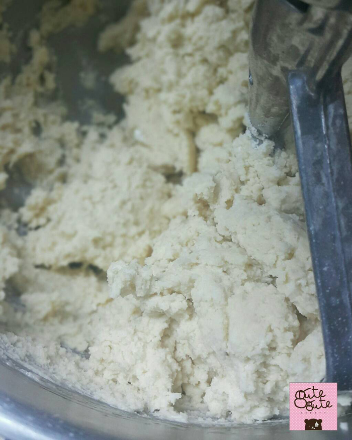 ส่วนผสม : แป้งเอนกประสงค์ 450 กรัม / ผงฟู 1 ชช. / เนยเค็ม 226 กรัม / น้ำตาลป่น 200 กรัม / ไข่ไก่เบอร์0 1 ฟอง / วนิลา 1ชช.
