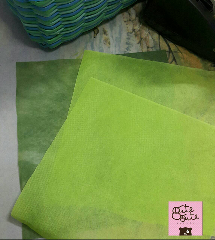 อุปกรณ์ : ตระกร้า (เราซื้อที่ไดโซะค่ะ ) / โอเอซิส / กระดาษสาสีเขียวหลายๆเฉด / สก๊อตเทป / ไม้เสียบลูกชิ้น