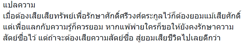 เสียสัตย์อย่าเสียสู้ ชีพม้วยมรณา <<<<-----ขอเน้นครับ