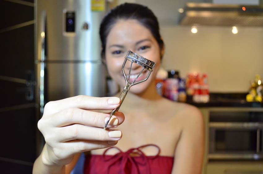 งานนี้ไม่พึ่งขนตาปลอมนะคะ เพราะฉะนั้นหนีบให้งอนสุดๆ ตั้งวงบนเลยค่าา (เคยเรียนรำไทยกันมั้ยคะ ตั้งวงบนอะค่ะ ทำแขนโค้งๆ55555)