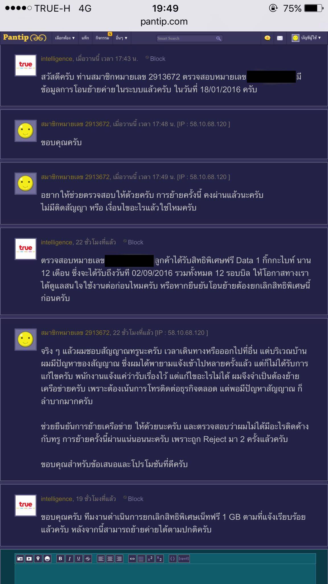 ผมจึงลังเลและไม่แน่ใจว่าจะเชื่อใจ Truemove ได้อีกรึเปล่า ต้องการคำยืนยัน จึงส่งข้อความหลังไมค์ให้ทางทีมงานทรูในพันทิพตรวจสอบให้ มาอ่านกันว่าพนักงานบอกว่าอย่างไร