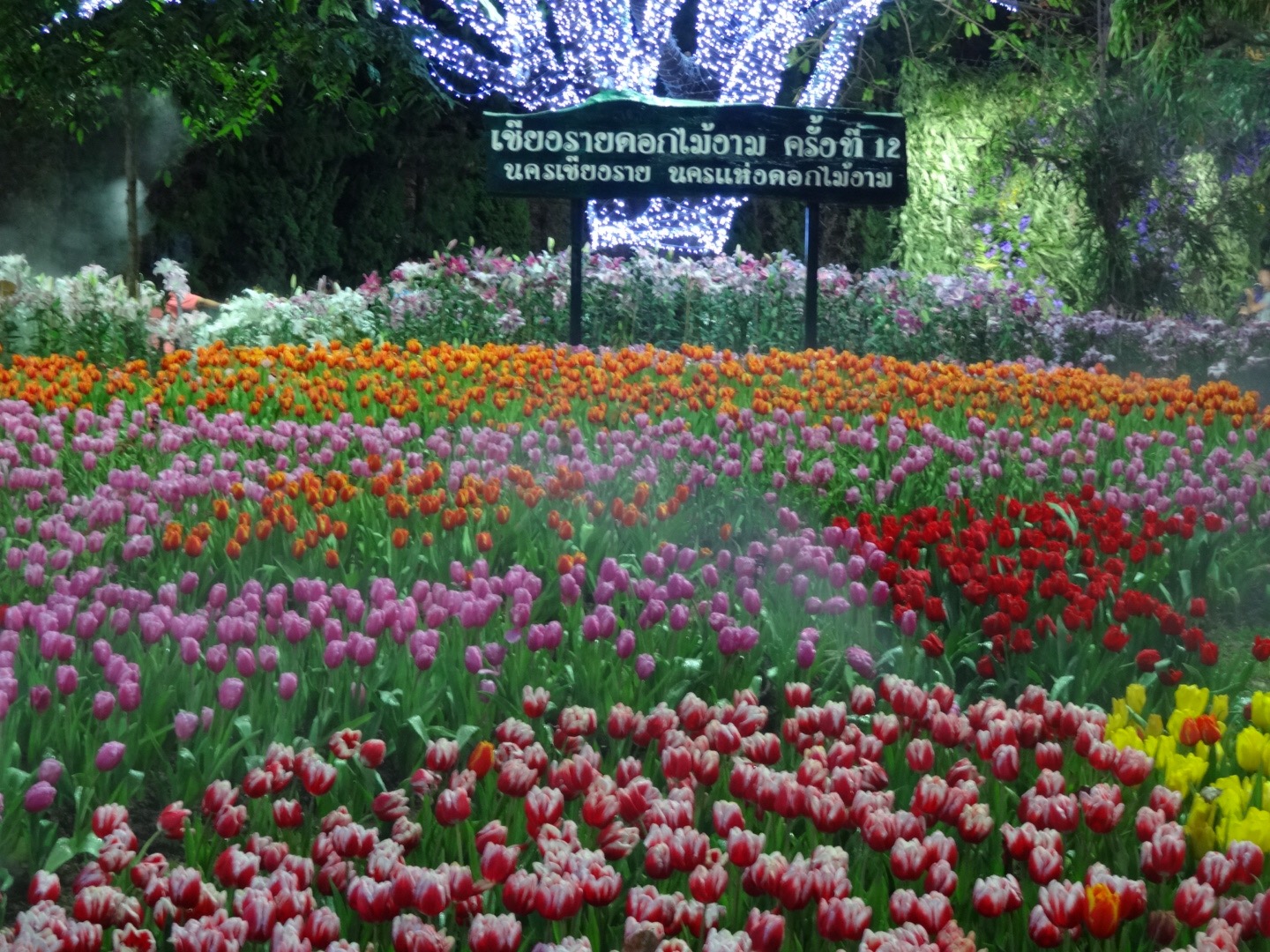 เดินหา โทรหาทุกที่แพงขึ้นแบบเท่าตัวเลย สุดท้ายเราก็เจอบ้านนึกอนงค์ ห้องพัดลม 350 บาท (ช่วงปกติ 260 บาท) ก็ตัดสินใจนอนอันนี้เลย แต่เราจะเข้าห้องได้ช่วง 11 โมง ตอนนี้ 9 โมงเอง ก็เลยตัดสินใจเดินต่อไปที่สวนตุงและโคมเฉลิมพระเกียรติ ขอเดินดูงาน เชียงรายดอกไม้งามครั้งที่ 12 ก่อนเข้าที่พัก เป้ใบเดียว 5 กิโลกรัมเองแบกไปเถอะ เดินมาถึงก็เจอดงดอกลิลลี่และความหอมระดับอบอวลไปหมด ชอบจัง