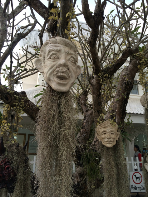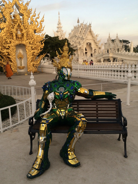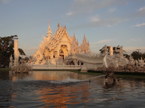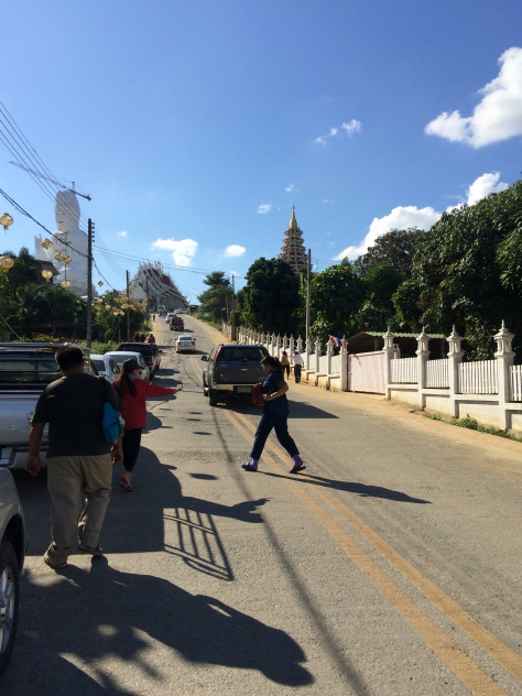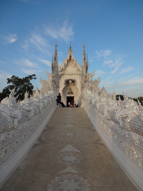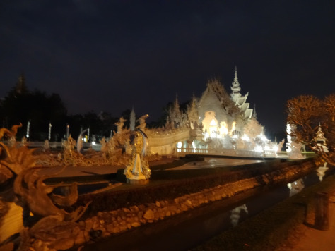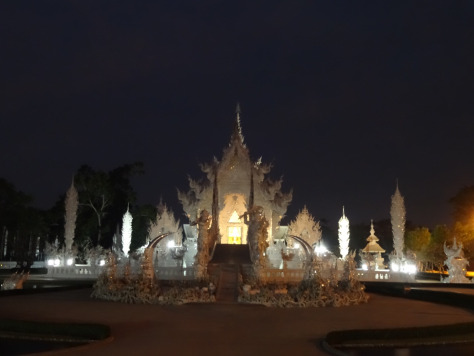 ฮือๆๆๆ ไม่โอเคเลยนะ เราชอบจุดพักรถสลกบาตรมากกว่า พอไม่ถูกปากก็เสียเงินซื้อลูกชิ้นทอดกับแคนตาลูปกินเอง อิ่มท้องก็ขึ้นรถนอนต่อ ไม่นานก็ถึงจุดที่คนเริ่มลงเยอะขึ้นเรื่อยๆ แล้ว เราก็หลับๆ ตื่นๆ พอใกล้ถึงปากทางเข้าวัดร่องขุ่นน้องเด็กรถก็มาเรียก ลงรถมาก็เช้าวันปีใหม่แล้ว มืดอยู่เลย อากาศเย็นกำลังสบาย