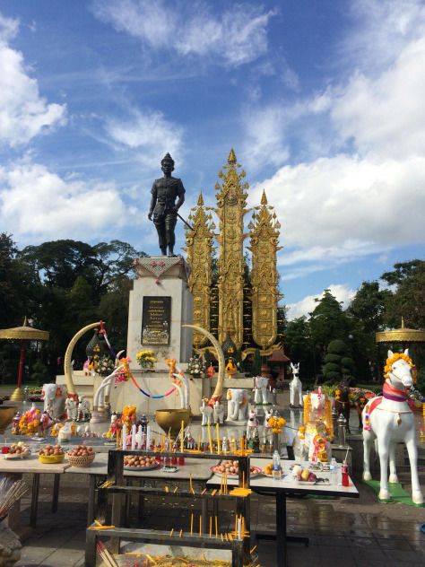 จะเที่ยงแล้วไปที่พักดีกว่า เขาบอกให้เดินต่อไปที่หน้าพ่อขุนเม็งรายก่อน หันหน้าเข้าแล้วไปทางขวาอีก 5 นาที งั้นเราควรแวะสักการะพ่อขุนเม็งรายก่อน