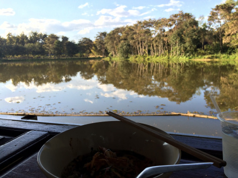 ออกจากวัดเราก็ต้องพึ่งพา google maps เพื่อไปจุดหมายของทริปนี้ สิงห์ปาร์ค ระหว่างทางรถเยอะมากๆ เห็นป้ายก๋วยเตี๋ยวห้อยขาเชียงรายก็เลยแวะกินมื้อแรกของวัน แต่มันไม่ได้ห้อยขาจริงๆ นะ โต๊ะห่างจากริมน้ำเยอะเกินไป