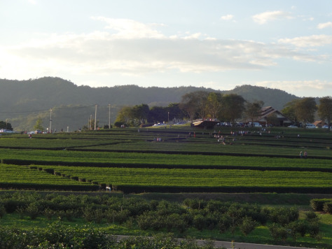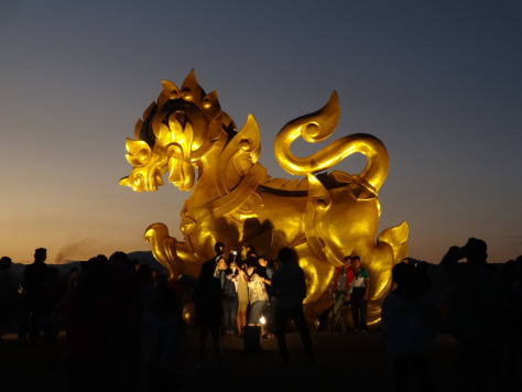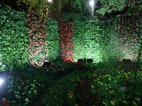 เริ่มมืดแล้วเราต้องรีบกลับเข้าเมืองแล้ว อากาศเริ่มหนาวจนต้องจอดรถใส่เสื้อหนาว ตอนแรกจะเข้าที่พักก่อน แต่ดูเวลาไม่น่าทันดูดนตรีในสวนแน่ๆ ก็เลยไปสวนตุงและโคมฯ เดินชมสวนดอกไม้ยามค่ำ