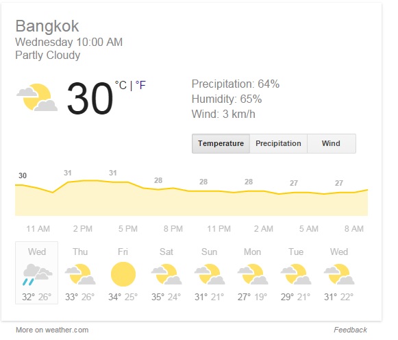 จริงมั้ยครับ ที่ว่า กรุงเทพ จะมีอากาศเย็นในวันอาทิตย์ จันทร์ และอังคาร ที่จะถึงนี้ ตามที่ปรากฏใน Google จาก weather.com