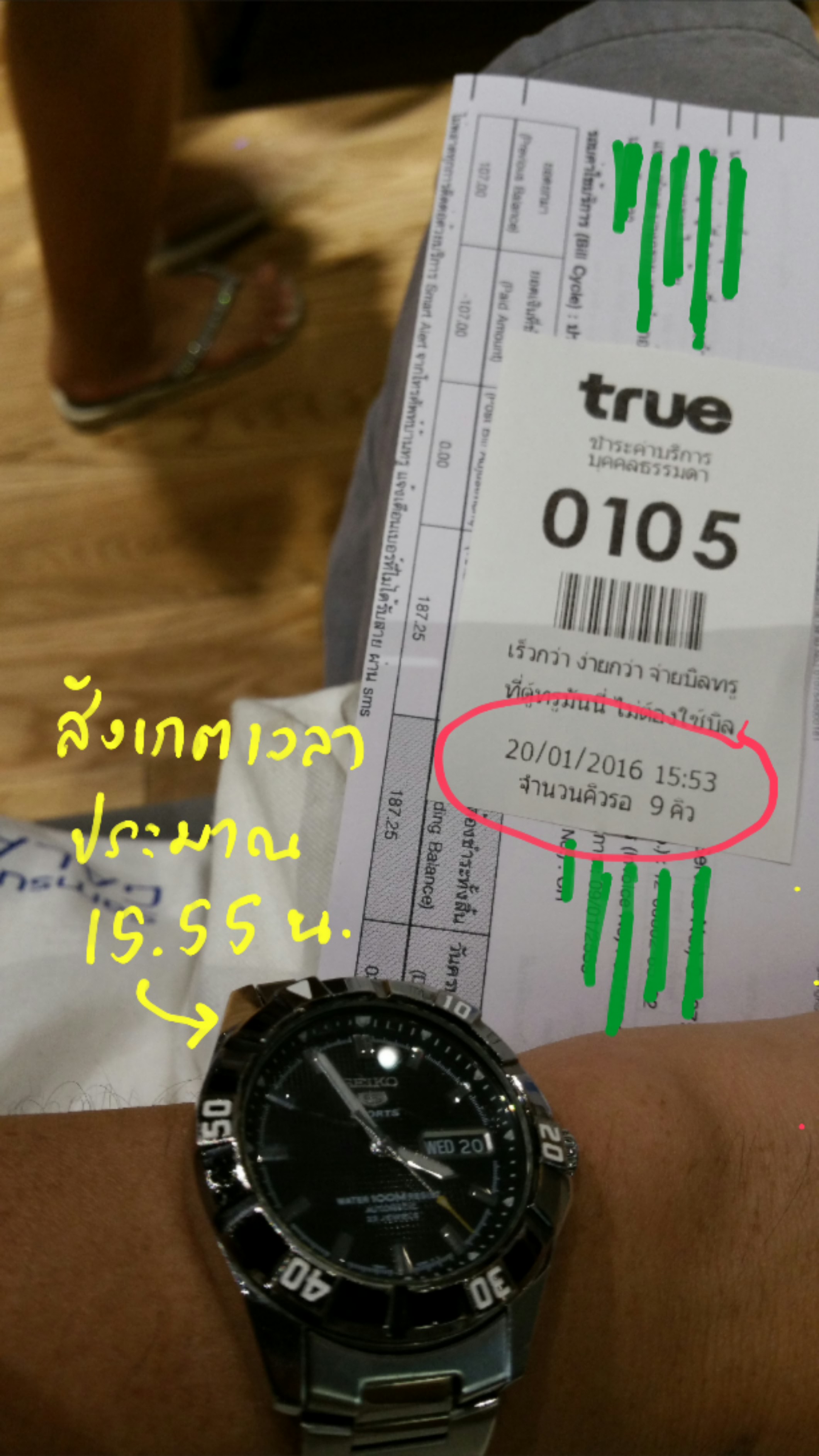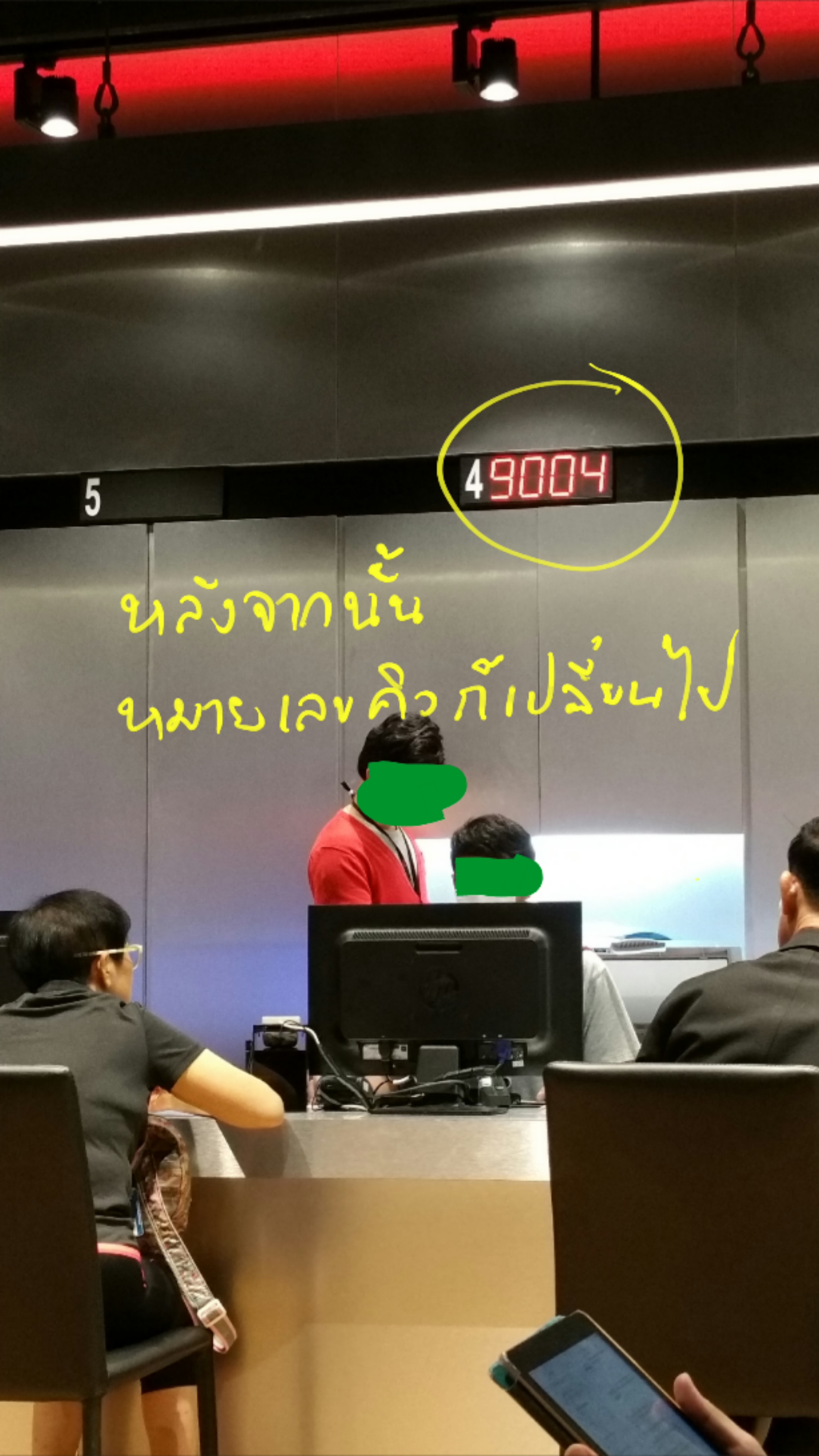 ผมนั่งรอบริการประมาณ 10 นาทีจึงได้รับการเรียกคิว แต่คิวย้ายไปช่องที่ 3 แทน