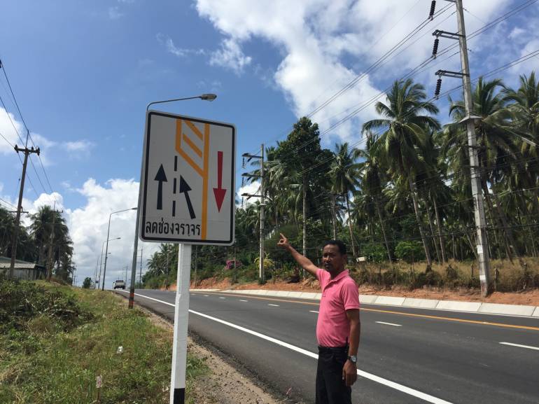 นายพิภพ ศรีสังข์ อายุ 50 ปี บ้านเลขที่ 47/2 หมู่ 1 ต.พงศ์ประศาสน์ อ.บางสะพานชาวบ้านที่เดือดร้อน กล่าวว่า การตีเส้นจราจรบนถนนของหน่วยงานที่รับผิดชอบ สร้างความงุนงงให้กับผู้ใช้รถใช้ถนนเป็นอย่างยิ่ง เนื่องจากชาวบ้านไม่คุ้นชินกับถนนที่มีเส้นจราจรในลักษณะที่พบเห็น คือ บางช่วงมีถนนฝั่งขาว 2 เลน ฝั่งซ้าย 1 เลน บางช่วงย้ายมาฝั่งซ้าย 2 เลน ฝั่งขาว 1 เลน บางช่วงมีเกาะกลางถนนกว้างมาก เส้นทึบเส้นประก็มีมากมาย ไหล่ทางแคบ