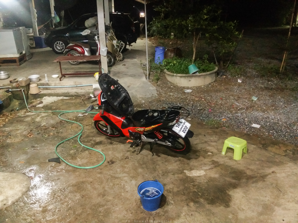 พอถึงบ้านก็นั่งล้างรถแก้เซง