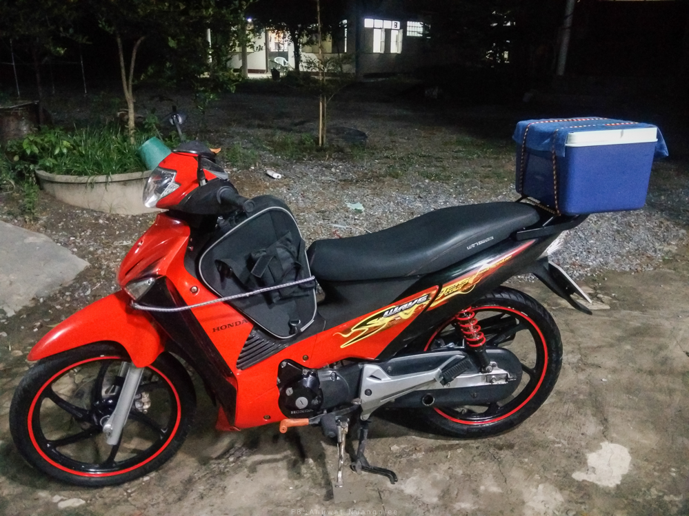 จากนั้นก็ขึ้นไปหรือกระเป๋าข้างที่มีข้างเดียว เพราะตอนออกทริปเมือปี 57 เกิดอุบัติเหตุล้ม ทำให้กระเป๋าข้างซ้ายขาด
