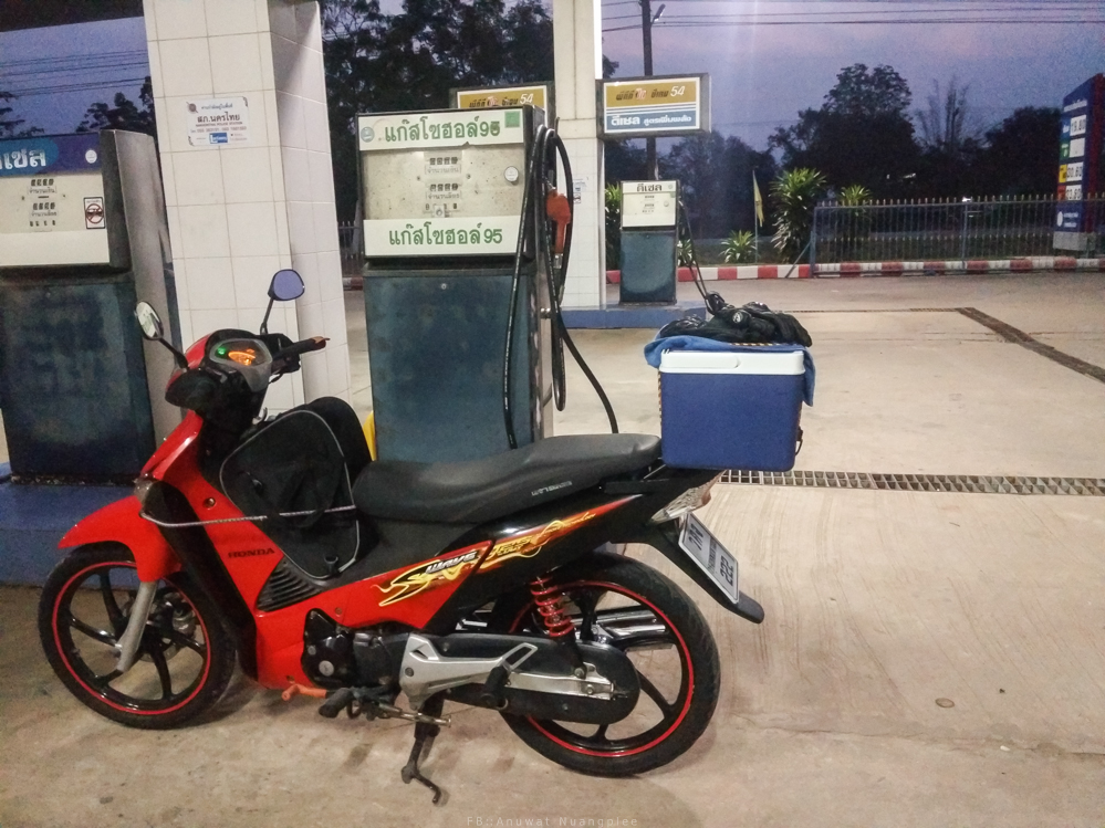06.00 น.เจ้าของปั๊มมา ผมก็เข็นไปเติม ปรากฏว่า เติมไม่ได้ครับ รอเมียเปิดบ้าน แกบอกว่าข้างหน้ามีปั๊ม เลยแยกไป 1 กิโล --*